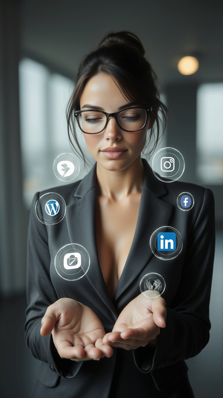 Ce que cette image nous montre, c'est une vision où toutes vos plateformes travaillent en synergie, sous la baguette magique de l'IA. C'est l'intégration parfaite, le mariage rêvé de la technologie et de la créativité. Plus besoin de jongler avec mille outils et de vous arracher les cheveux, l'IA orchestre tout, comme un chef d'orchestre de la Silicon Valley qui aurait binge-watché toutes les saisons de Sex and the City.